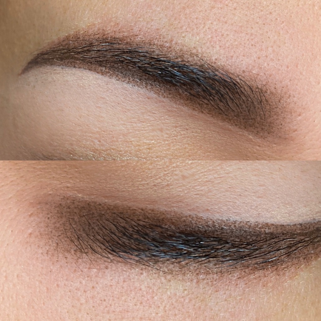 Im Vergleich zu klassischen Permanent-Make-up-Methoden entstehen keine harten Linien oder klaren Konturen. Stattdessen wirken die Brauen weich, natürlich und leicht schattiert. Die Farbe baut sich sanft auf und läuft harmonisch aus, sodass ein sehr elegantes und gepflegtes Gesamtbild entsteht.